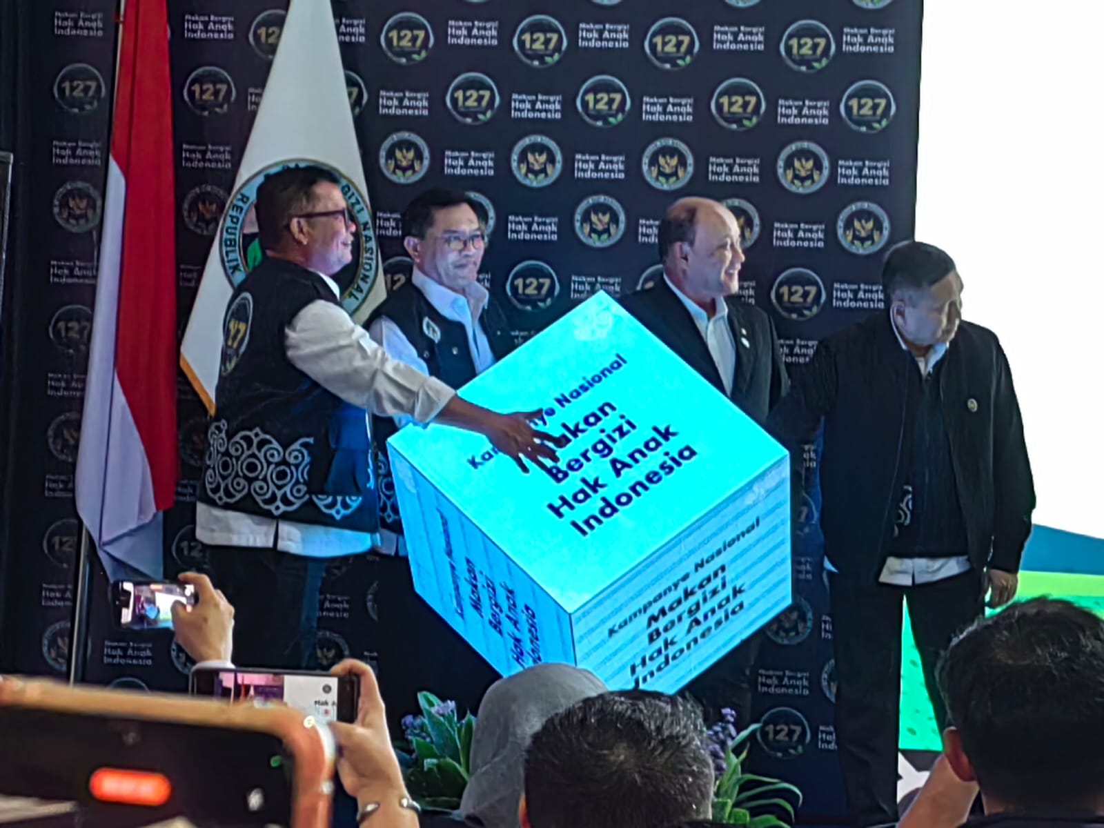 Pada acara peluncuran, dua siswa penerima manfaat MBG, Kasim dari Raja Ampat dan Almira dari Garut, turut hadir memberikan kesaksian mengenai perubahan positif yang mereka rasakan setelah menerima makanan bergizi rutin di sekolah.